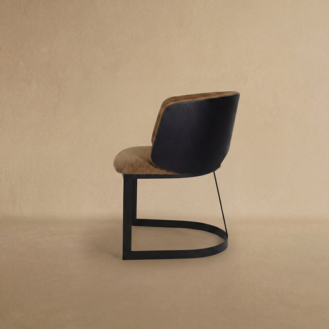 Mezzaluna Dining Chair with Veneer Back and Metal Base